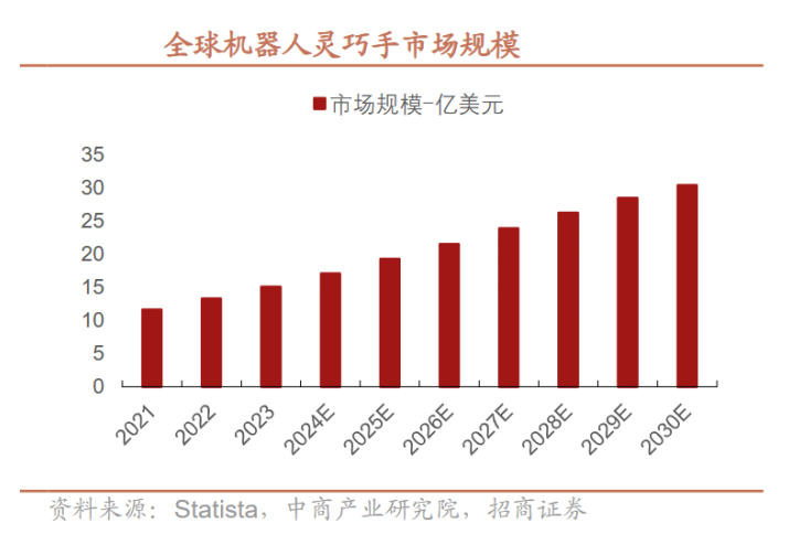 今年11月14日,DB官方网站机电在机器人灵巧手发布会上全球首次展示了其最新研发成果——仿生灵巧手。这款产品采用了全驱动方案,拥有17个主动自由度,每个指节都能独立驱动,完美融合了灵巧性和长寿命设计。作为人形机器人与外界交互的关键媒介,灵巧手不仅是机器人功能性的直接体现,而且在价值量上占有重要比重。据中商产业研究院预测,2023年全球机器人灵巧手市场规模达到15亿美元,预计到2030年将突破30亿美元,年复合增长率约为10.3%。这一技术突破不仅标志着DB官方网站机电在微型传动领域的先进地位,也显示了公司在机器人领域的发展潜力。随着人形机器人行业的迅猛发展,DB官方网站机电有望通过灵巧手等创新产品进一步扩大其市场影响力。